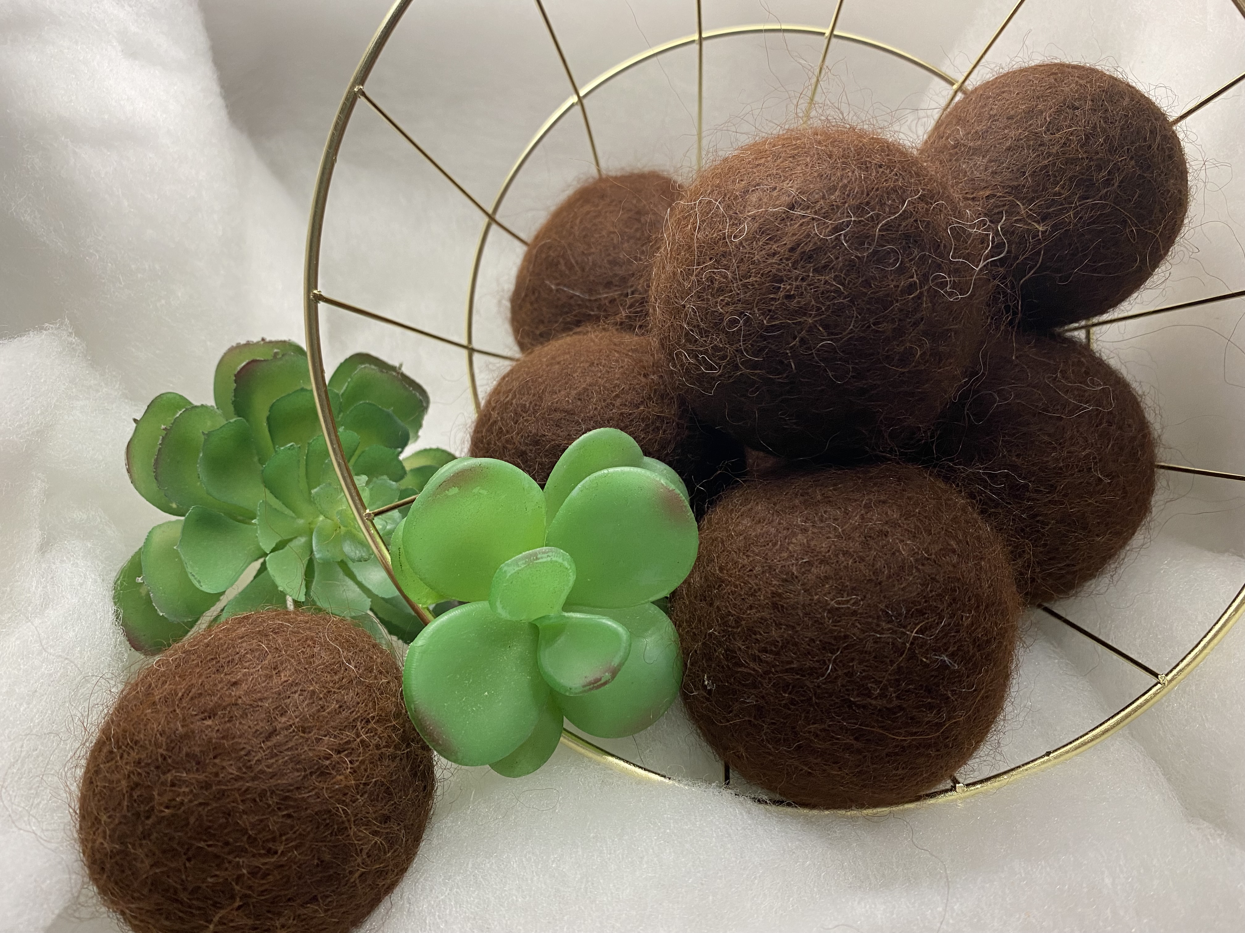 These drier balls are made from alpaca fiber. Drier balls are known to reduce static and drying time. Place drier balls in the drier with your wet laundry before starting your drier. Drier balls also help reduce waste by not having to use drier sheets.