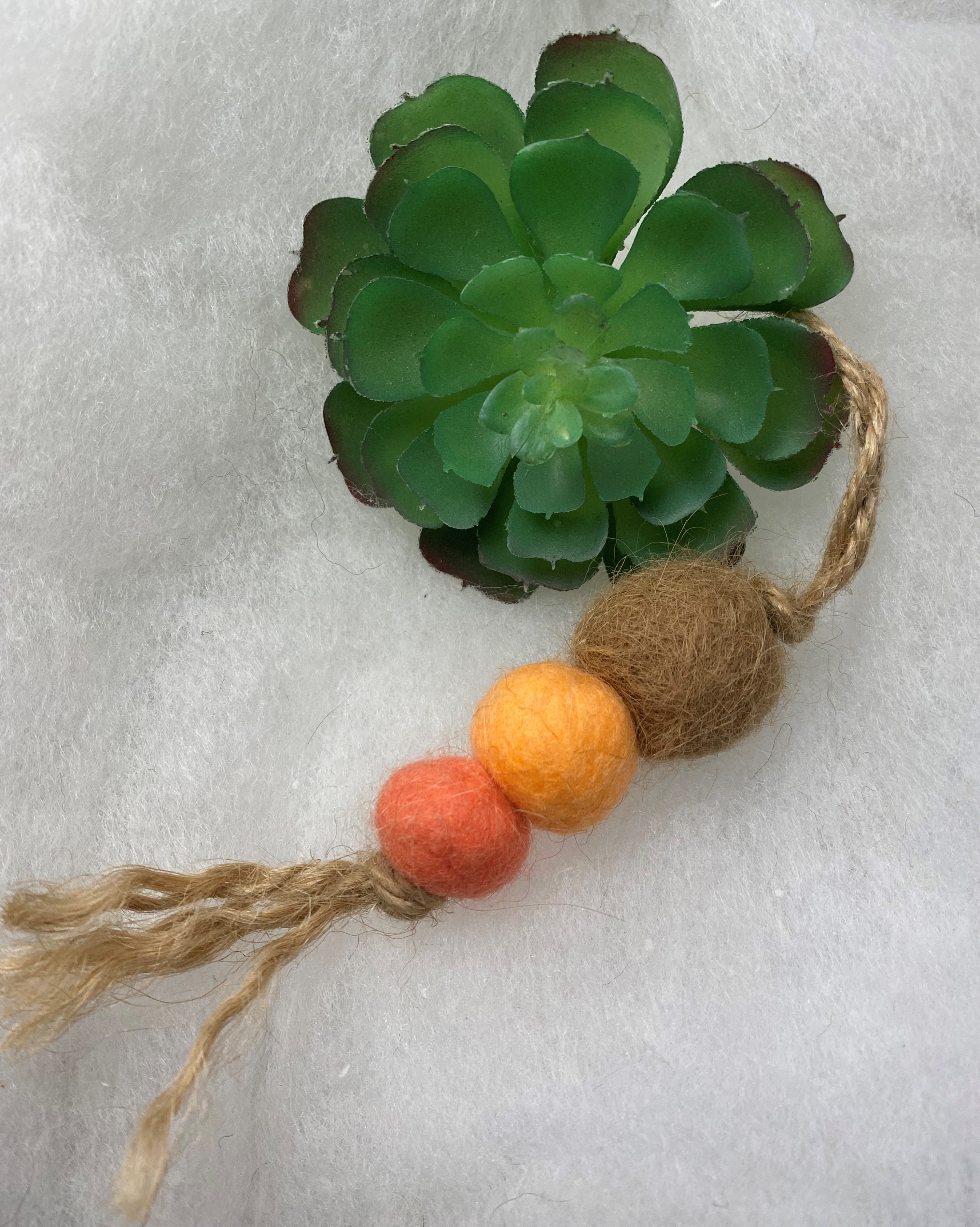 Fall inspired handmade felted ball diffuser. Hang anywhere in your car or home. Comes unscented so that you can use your favorite oils. Scented diffusers to come!